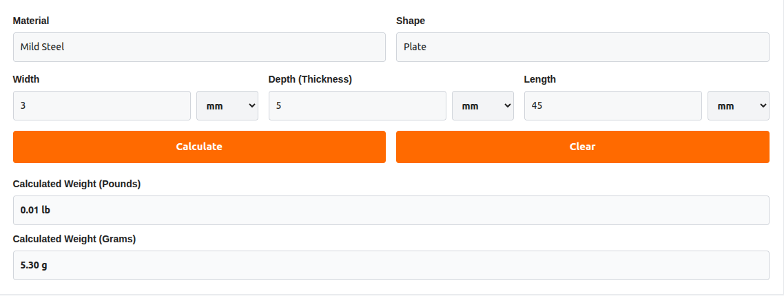 The calculator works on a standard engineering formula that considers volume and density. This ensures consistency across all plate sizes and thicknesses.