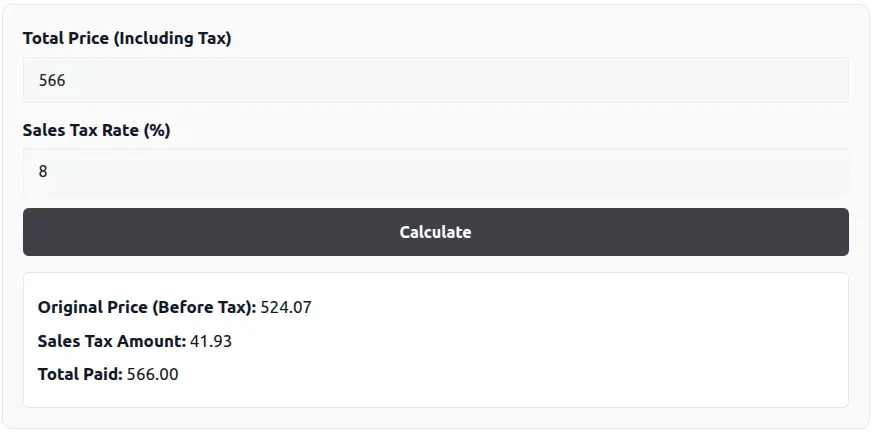 A reverse sales tax calculator helps you find the original price before tax when you only know the final amount paid. This tool gives fast, accurate results for receipts, refunds, invoices, and accounting checks.